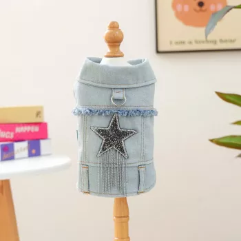 Autumn Denim Dog Vest with Tassel Star Design – Warm Puppy Jacket
