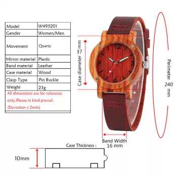 Elegant Cherry Wood Quartz Watch for Women with Leather Band