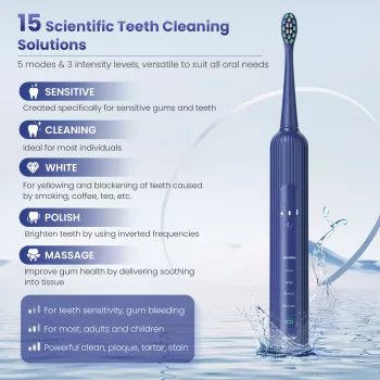 Rechargeable Sonic Electric Toothbrush with 5 Modes & 6 Brush Heads