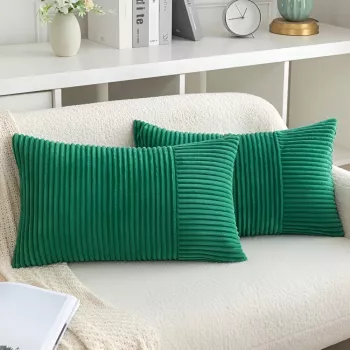 Set of 2 Corduroy Patchwork Throw Pillow Covers with Invisible Zipper